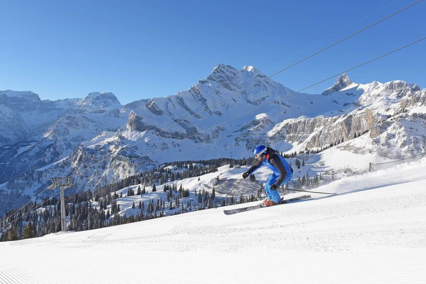Stehts das imposante Panorama vor Augen! Geniessen Sie die 30 km präparierten und abwechslungsreichen Pistenkilometern in allen Schwierigkeitsgraden. Ideale Übungslifte für die Kids, spannende Abfahrten oder Freeride im Bächital für die Könner.