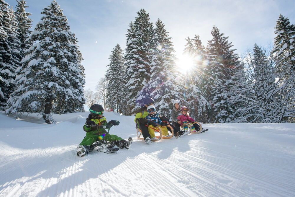Schwungvoll drauflos schlitteln - Die Schlittelpiste inmitten des schönen Panoramas der Glarner Berge ist für Gross und Klein ein Highlight. Das 3 km Schlittel-Abenteuer startet im Grotzenbüel und führt via Gross-Syten zur Station Hüttenberg. Die Piste ist ausschliesslich für Schlittler reserviert und verspricht viel Fun und Action.